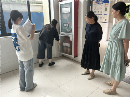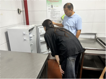检查组仔细查看了校门口安保人员值守、校园监控设备运行、物防设施等情况,接着又来到食堂,检查了食堂的消防设施,学校食堂公示栏,查看了食堂六化建设记录,现场检查食品留样是否规范。