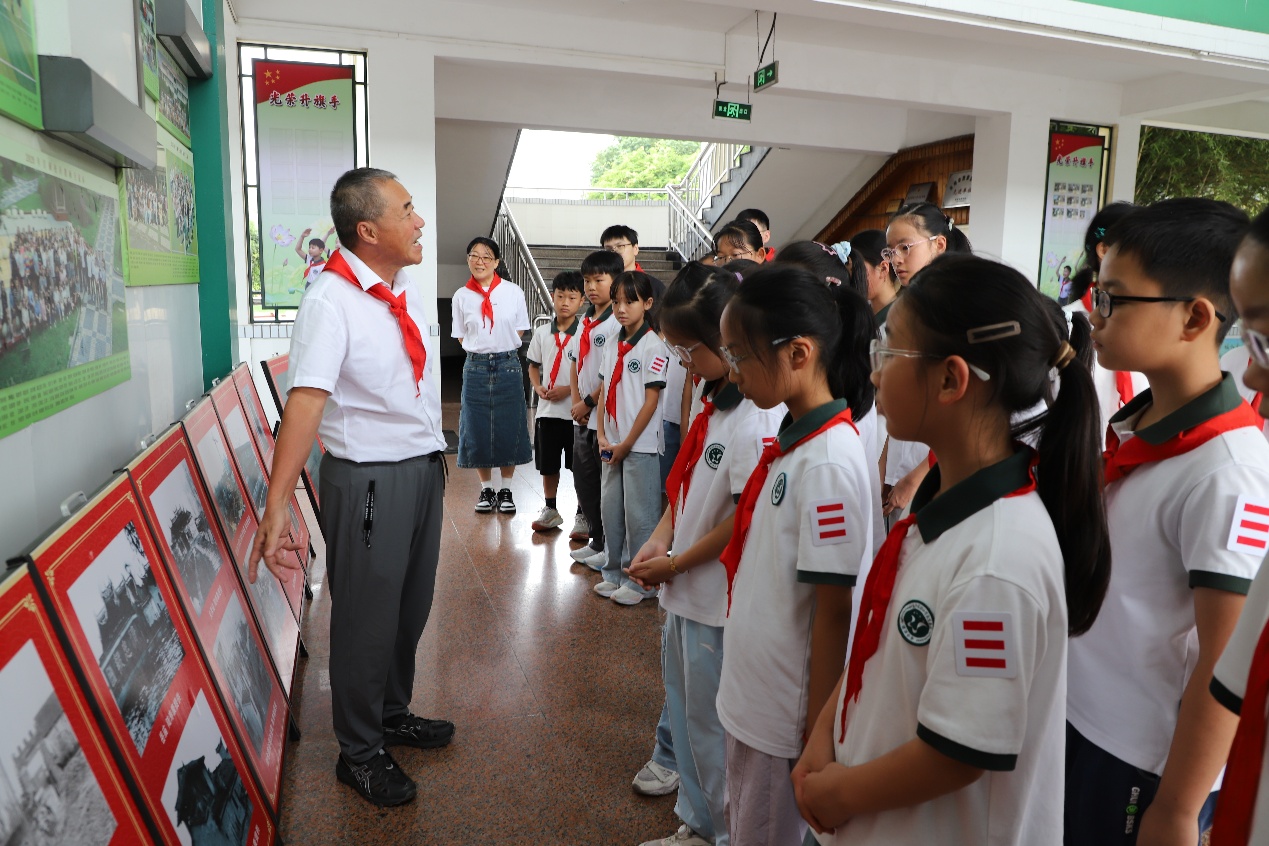 少启动仪式结束后,新当选的大队委成员来到门厅,参观“目澜社区科技文化名人展”,开启一堂别样的思政课。学校邀请目澜社区的“五老”代表夏金荣担任主讲,夏爷爷结合展板内容,用亲切而深情的讲述,为队员们介绍了从目澜社区走出的多位科技、文化领域杰出人物的生平事迹与卓越贡献。队员们认真聆听,仿佛穿越时空,感受到先辈们求真务实、报效家国的崇高精神。