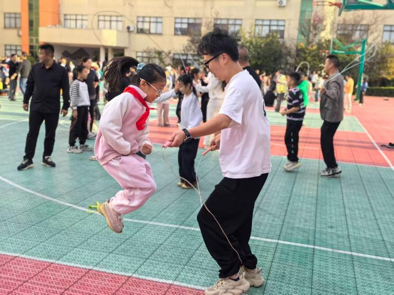 学校特邀上海市心理学会临床心理与心理督导专业委员会理事、华师大心理健康辅导中心咨询专家高晓墉老师为家长开展家庭教育专题讲座。高老师从兴趣引导、目标设定、环境塑造三方面入手,通过与家长的互动,帮助家长避免否定式语言,建立成长型沟通模式。讲座结束后,任课教师与家长进行了面对面的深入交流,任课老师结合学科特色与教学经验,针对孩子们在学习过程中遇到的困难提出针对性建议。盛泽镇的骨干团队“林老师团队”针对家长们在家庭教育中遇到的困惑,耐心倾听家长们关于如何构建和谐亲子关系、情绪管理以及实现高效亲子陪伴等方面的疑问,并提供了“一对一”的咨询指导服务,旨在帮助家长更好地营造和谐幸福的家庭氛围,建立和谐的亲子关系。最后,学生与家长进行了亲子跳绳1分钟挑战赛。孩子们和家长们配合默契,绳子在他们手中飞速舞动,现场加油声、欢笑声此起彼伏。