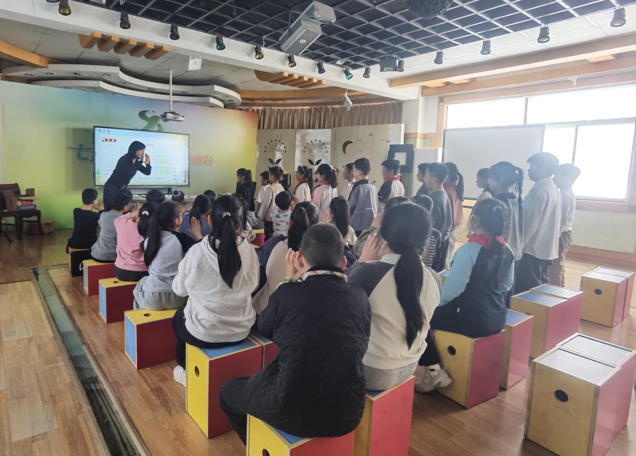 紧接着,张磊明老师的四年级“一人一课”《春游》接棒开讲。他提前准备了沙锤、三角铁等奥尔夫乐器,以“模拟春游脚步声”的声势律动开场,带着学生用不同节奏表现“走路”“赏花”“欢呼”等春游场景;学唱环节中,他引导学生用乐器为歌曲伴奏,当清脆的沙锤声伴着“春天天气真好”的歌声响起时,课堂瞬间洋溢着春日的欢快氛围。