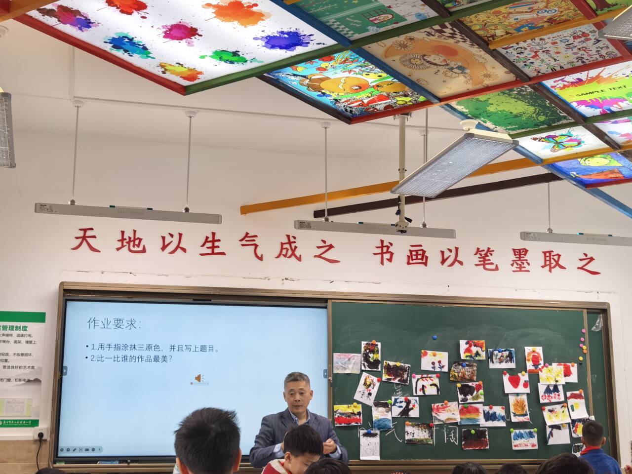 课堂上,娄校不停的引导,在试错与尝试中,自主总结出“工具不同,色彩呈现的效果也不同”。整堂课孩子们的惊叹声此起彼伏。这堂美术课不仅让孩子掌握了三原色产生的知识,更通过沉浸式探索,激发了他们的观察力与想象力,让艺术学习成为一场充满未知与惊喜的发现之旅。