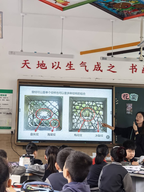 11月4日,周勤老师以《花窗》为题开设美术课,围绕花窗文化与艺术特点,以“分类—外形—窗棂图案”为清晰脉络,引导学生系统探秘传统花窗的美学魅力。